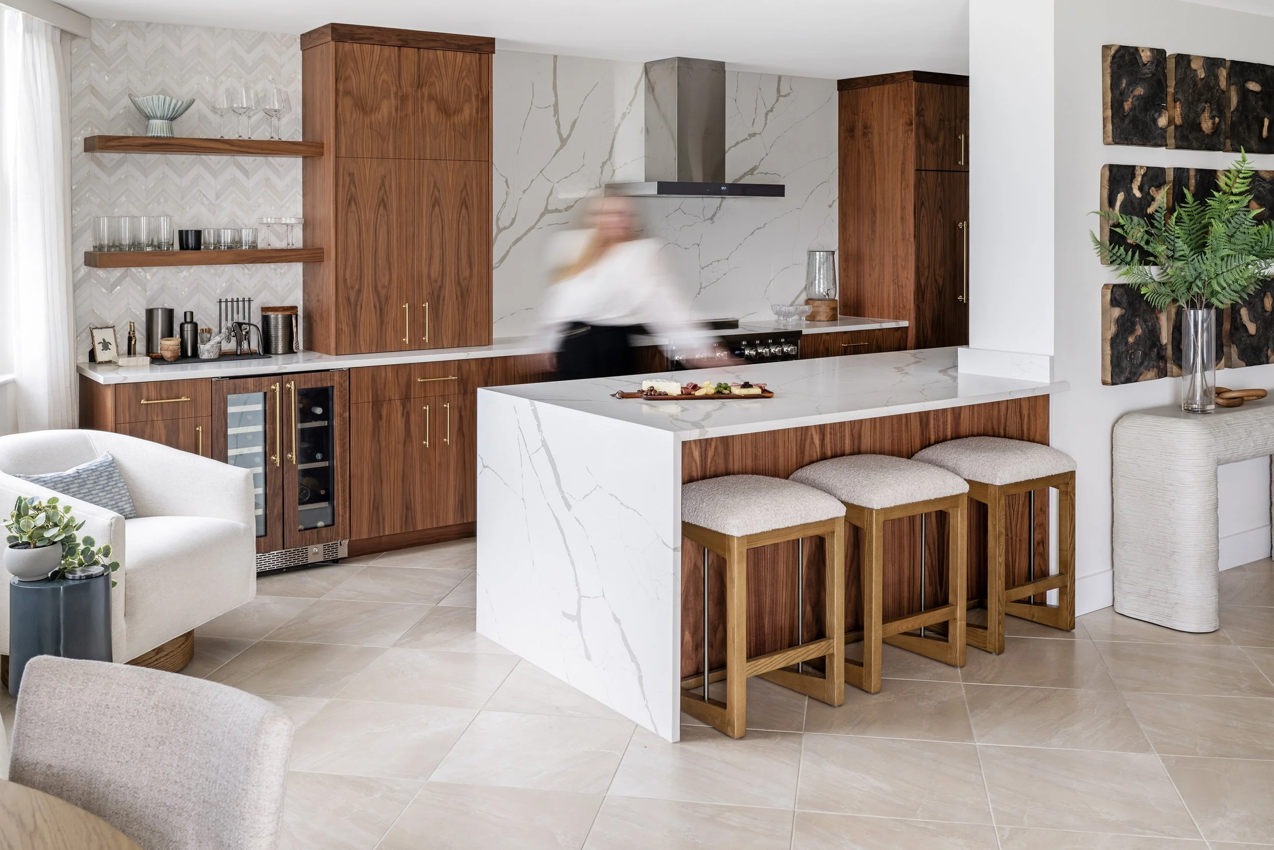 This Longboat Key Club residence is a full-service, luxury gut renovation that reimagines coastal living through a warm, contemporary lens. From construction design to finishes, furnishings, and final styling, every detail was thoughtfully considered to create a home that feels elevated, modern, and intentionally layered.